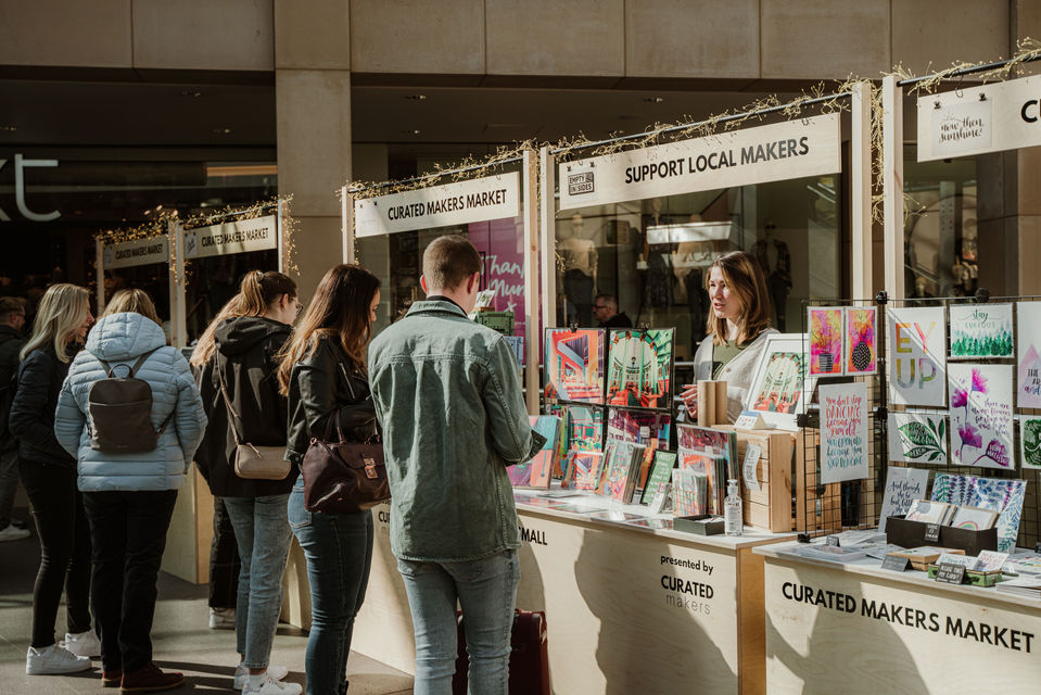 For our first market at Leeds Trinity we proved that by applying our method of Space Transformation, Product Curation that Connects and Outstanding Performance, we could elevate the appearance and understanding of a 'craft fair'. Popping up for seasonal market weekends, we've adapted to the to the spaces and timeframes available and activated an otherwise empty area in their bridged walkways.
